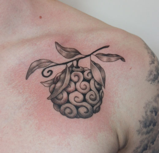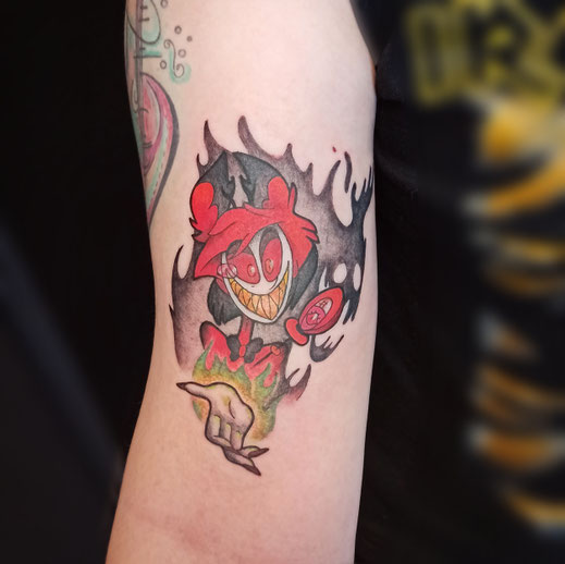 Umsetzung als Farbtattoo - hier wurde eine möglichst originalgetreue Darstellung des Charakters gewählt und mithilfe von Linien, Schatten und Farbflächen umgesetzt.